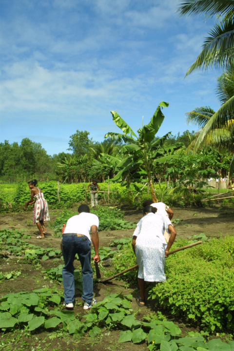 Their houses built on stilts in the tidal flats, the villagers wisely use the fertile uplands for the farming of vegetables.